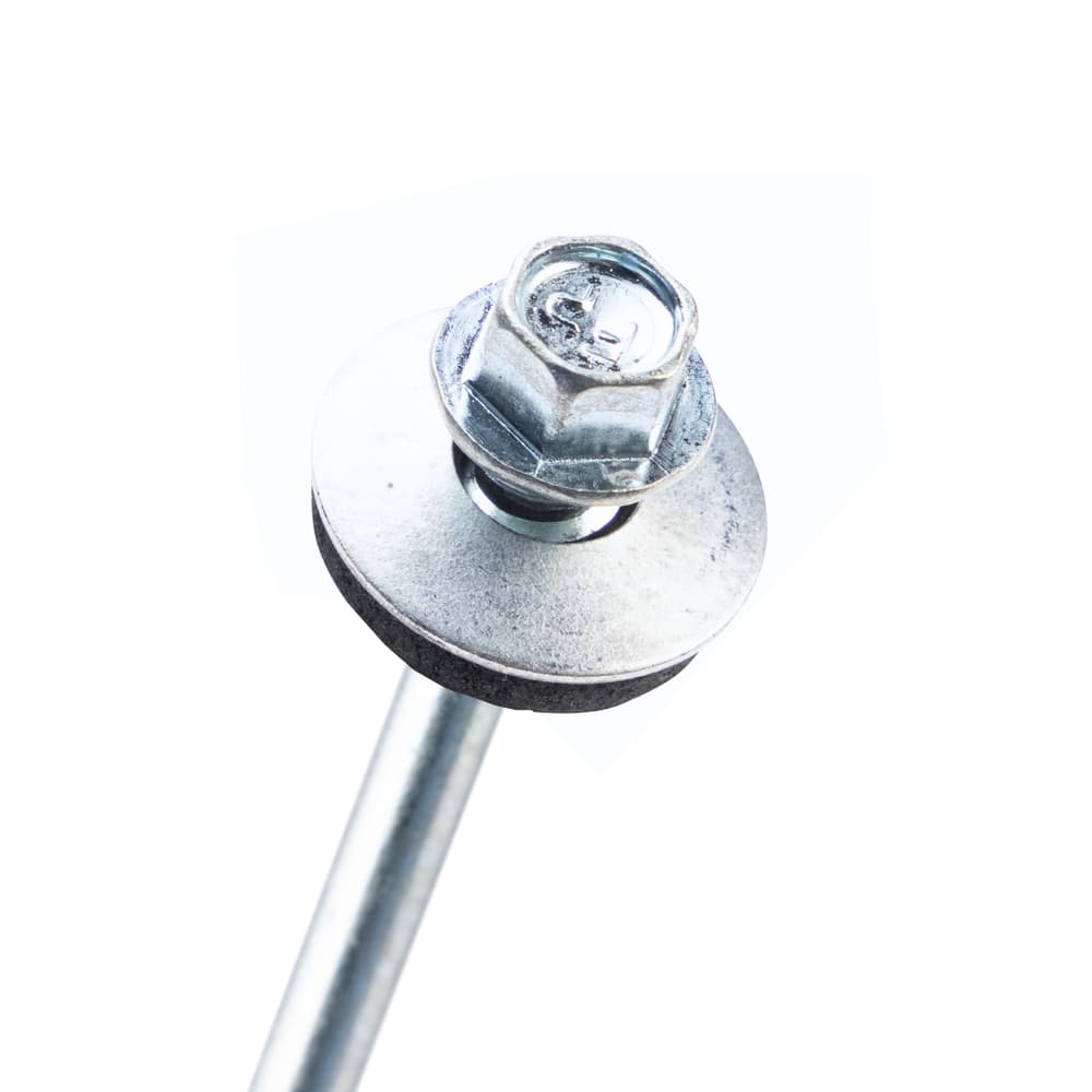 Zelftappende verzinkt stalen schroeven met EPDM-ring, verkrijgbaar in 75 of 100 mm. Waterdicht, duurzaam en verpakt per 100 stuks in Aluzinc-kleur.
