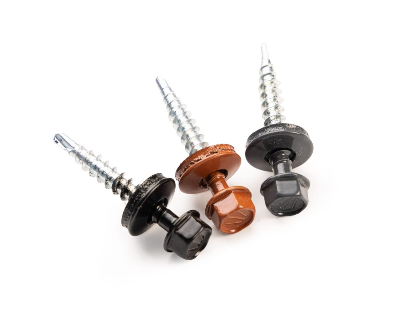Voor het monteren van ongeïsoleerde beplating leveren wij zelftappende, gepoedercoate schroeven in dezelfde kleur als de platen. Voorboren is niet nodig en dankzij het speciale rubber zijn de schroeven volledig waterdicht.
